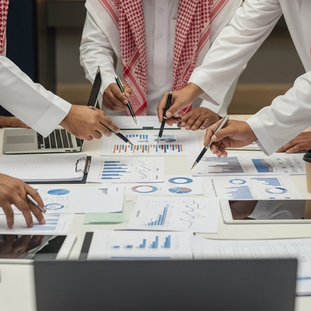 ما نشتغل عشوائي. نبدأ بدراسة وضع شركتك، نحدد أهداف النمو، ونبني خطة تعتمد على البيانات والتحليل.